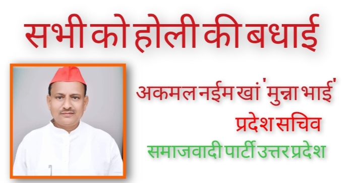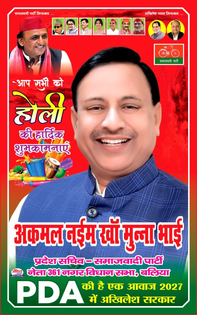 बलिया : समाजवादी पार्टी के प्रदेश सचिव, नगर विधानसभा क्षेत्र के वरिष्ठ नेता अकमल नईम खां “मुन्ना भाई” ने नगर विधानसभा के सम्मानित जनों, जनपदवासियों और प्रदेश के नागरिकों को होली पर्व पर शुभकामना दिया। कहा होली आपसी प्रेम और सौहार्द का पर्व है इसे सौहार्दपूर्ण तरीके से मिलजुल कर मनाना चाहिए।