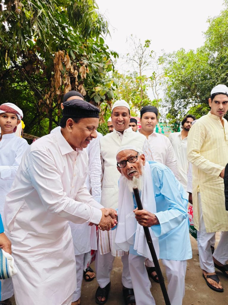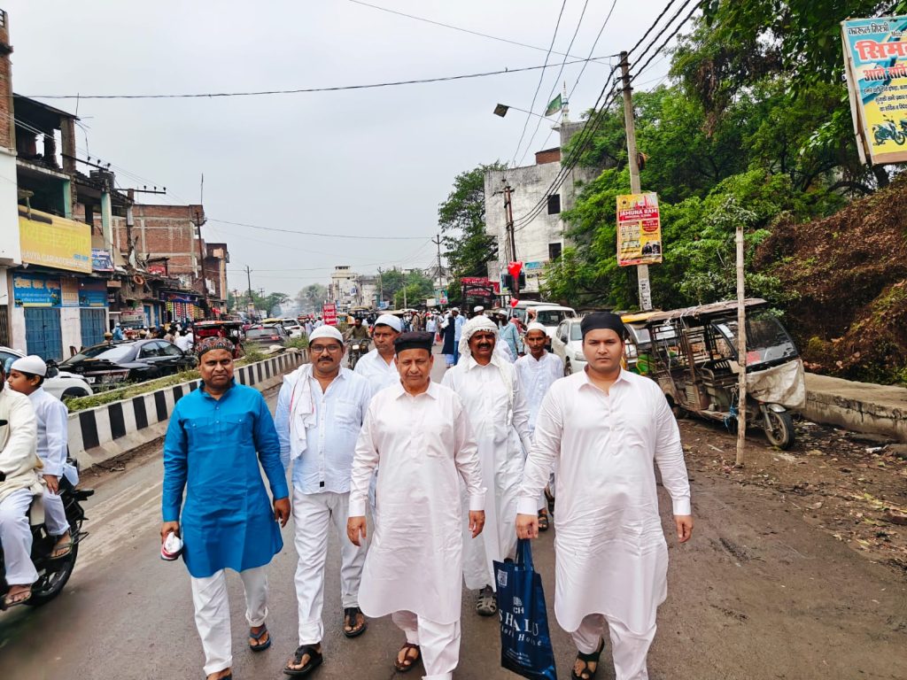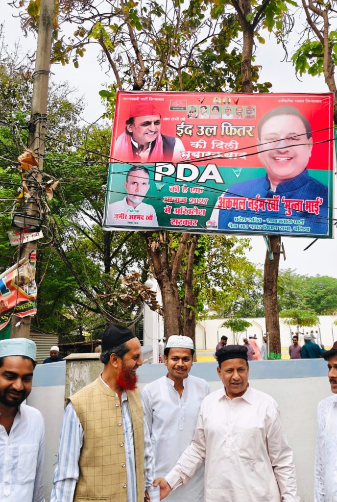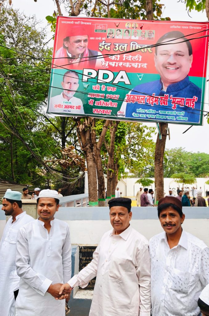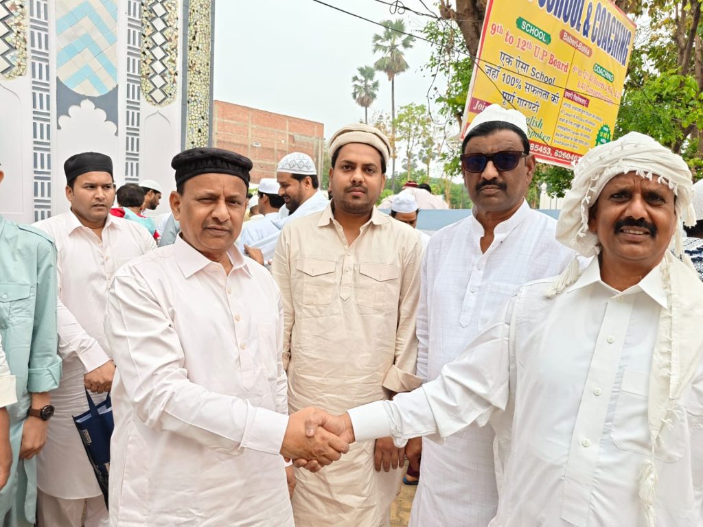 समाजवादी पार्टी के प्रदेश सचिव अकमल नईम खां मुन्ना ने नमाज अदा कर देश और प्रदेश के मुकम्मल विकास की कामना की। नमाज के बाद ईदगाह में सभी को ईद की बधाई दी। उसके बाद शुरू हुआ ईद मिलने का दौर। सभी से गले मिल अकमल नईम खां मुन्ना ने सभी को मुबारकबाद दिया। आम और खास सभी से गले मिले और सभी से हाथ मिलाया। सपा प्रदेश सचिव अकमल नईम खां मुन्ना ने बहुतेरे लोगों को ईद का उपहार भी दिया। देर शाम तक सेवई खाने खिलाने का दौर चलता रहा। नगर विधानसभा क्षेत्र के लोगों के लिए भी अकमल नईम खां मुन्ना ने नमाज अदा की।