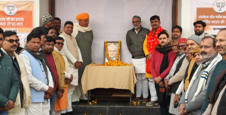 शुभारंभ के बाद सभी अतिथियों ने पूर्व प्रधानमंत्री अटल बिहारी वाजपेयी के चित्र पर माल्यार्पण कर उन्हें श्रद्धांजलि अर्पित की। यह आयोजन बड़े ही धूमधाम और श्रद्धा के साथ संपन्न हुआ। इस अवसर पर पूर्व सांसद मस्त ने अटल बिहारी वाजपेयी के जीवन परिचय पर प्रकाश डाला। कहा कि आज राष्ट्र ऋषि अटल बिहारी वाजपेई की जयंती है। मुझे गर्व है भाजपा कार्यकर्ता के नाते कि मैं अटल बिहारी वाजपेई के साथ दो बार सांसद रहा हूं। अटल जी संसद और संसद के बाहर मुझे अपना हनुमान कहते थे। अटल जी ने जो राजनीति में राष्ट्र धर्म का संदेश दिया वह हर भारत के नागरिक के लिए अनुकरणीय है। राज्यसभा सांसद नीरज शेखर ने कहा कि भाजपा एक राष्ट्रवादी संगठन है और जब देश पर लोकतंत्र पर खतरा पैदा हुआ जयप्रकाश नारायण के नेतृत्व में जनता पार्टी के नेंतृत्व में सरकार बनी। कुछ विचारधारा के कारण जनसंघ को सरकार से अलग होना पड़ा। उसके बाद भाजपा का निर्माण हुआ और अटल जी के नेतृत्व में बीजेपी आगे बढी। बताया कि वाजपेयी न केवल देश के प्रधानमंत्री थे, बल्कि एक कुशल कवि और पत्रकार भी थे। उनकी कविताओं में राष्ट्रभक्ति, मानवीय संवेदना और सामाजिक चेतना की झलक मिलती है। जिलाध्यक्ष संजय मिश्रा ने कहा कि पत्रकारिता के क्षेत्र में भी अटल जी अपनी लेखनी से लोकतांत्रिक मूल्यों को मजबूत किया। अटल जी ने देश को सशक्त नेतृत्व दिया। अटल जी के चित्र पर लगी प्रदर्शनी का सांसद नीरज शेखर, जिलाध्यक्ष संजय मिश्रा व पूर्व सांसद विरेन्द्र सिंह मस्त ने अवलोकन किया। इस मौके पर सुनिता श्रीवास्तव, पूर्व जिलाध्यक्ष जयप्रकाश साहु, परिवहन मंत्री दयाशंकर सिंह के प्रतिनिधि धर्मेन्द्र सिंह, सुरेन्द्र सिंह, विजय बहादुर सिंह, आलोक शुक्ला, कृष्णा पाण्डेय, जयप्रकाश जयसवाल आदि लोग उपस्थित रहे।