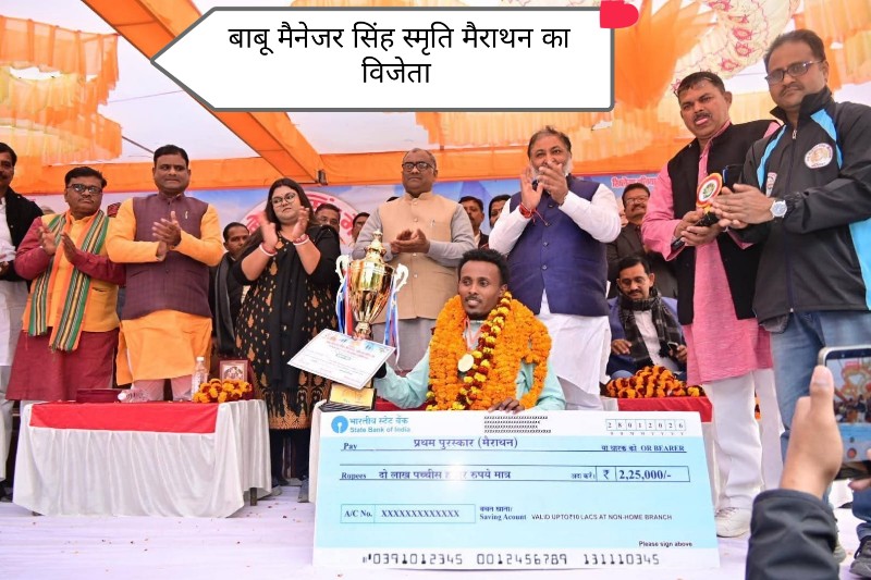 बाबू मैनेजर सिंह की जयंती पर आयोजित फुल मैराथन 42.195 किमी दौड़ में अफ्रीकी देश इथोपिया के निवासी फिरोनिशा ने प्रथम स्थान हासिल किया। फिरोनिशा ने कुल 2 घंटे 8 मिनट में दौड़ पूरा किया। इनके बाद पहुंचे मुजफ्फरनगर के अक्षय कुमार द्वितीय व दिल्ली के अमरेश प्रजापति ने तृतीय स्थान हासिल किया। इसके अलावा हाफ मैराथन 21 किमी में वाराणसी के पंकज कुमार ने प्रथम स्थान प्राप्त किया। इसमें अयोध्या के प्रिंसराज यादव द्वितीय व आगरा के मनीष सिंह ने तीसरा स्थान प्राप्त किया। दस किमी में प्रिंस राज मिश्र प्रथम वाराणसी के आशीष पाल तथा बलिया राकेश वर्मा ने द्वितीय व तृतीय स्थान प्राप्त किया। वही 5 किलोमीटर में वाराणसी की सोनी प्रथम व वाराणसी की ही लक्ष्मी चौहान द्वितीय तथा रूबी पाल ने तृतीय स्थान प्राप्त किया। मैराथन में प्रथम स्थान प्राप्त करने वाले फिरोनिशा को प्रभारी मंत्री गिरीश चंद्र यादव ने 2.25 लाख रुपए का पुरस्कार प्रदान किया। इसमें दूसरे स्थान पर आए अक्षय कुमार को 1.25 लाख व अमरेश प्रजापति को 75 हजार रुपए की पुरस्कार राशि प्रदान की गई।