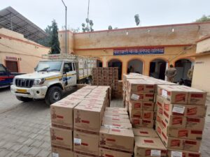 बलिया : पुलिस अधीक्षक ओमवीर सिंह के निर्देशन में अवैध शराब तस्करी के विरुद्ध चलाये जा रहे अभियान के क्रम में बैरिया पुलिस को एक बड़ी सफलता हाथ लगी। पुलिस ने एक टिकट में लदी पौने 18 लाख कीमत की 315 पेटी अवैध अंग्रेजी शराब बरामद किया। शराब लदी वाहन का चालक अंधेरे का फायदा उठाकर फरार हो गया।