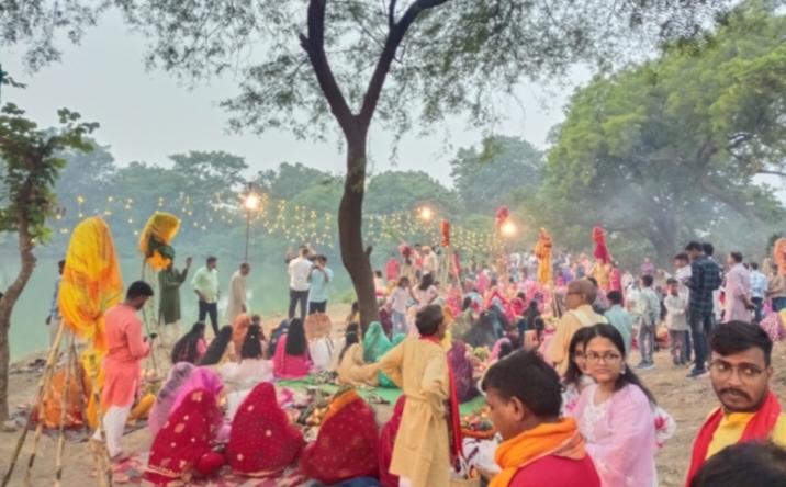 अस्ताचलगामी सूर्य को छठ व्रतियों ने दिया पहला अर्घ्य अर्घ्य