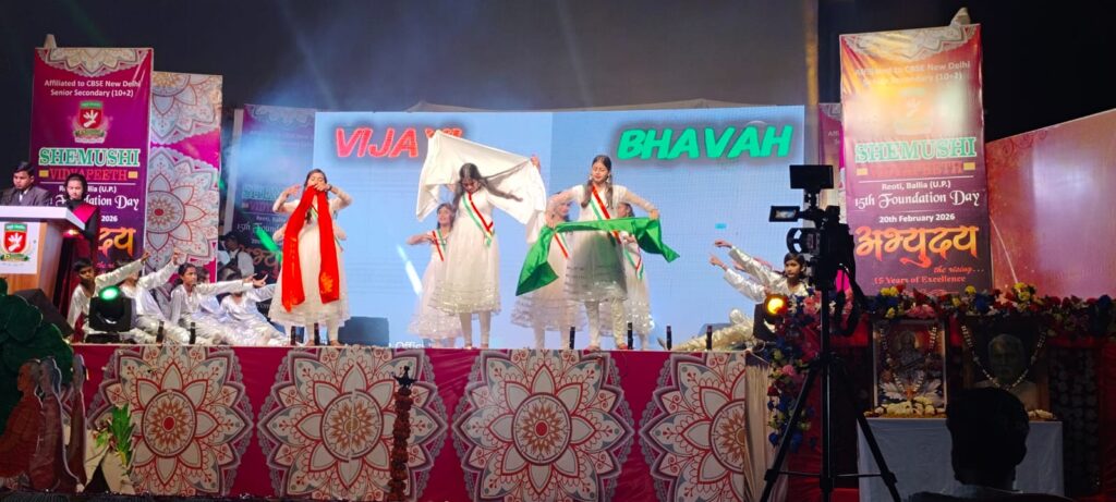 बलिया : शेमुषी विद्यापीठ रेवती का 15वां वार्षिकोत्सव “अभ्युदय” हर्षोल्लास के साथ मनाया गया। इस दौरान विद्यालय के छात्र-छात्राओं ने विभिन्न कार्यक्रम प्रस्तुत किया। अभ्युदय का शुभारम्भ पूर्व चेयरमैन रामेश्वर नाथ तिवारी, विद्यालय के चेयरमैन परमेश्वर नाथ तिवारी, भारत पेट्रोलियम के एरिया मैनेजर निहाल पाण्डेय, वाइस चेयरमैन अभिज्ञान तिवारी, डायरेक्टर अभिषेक तिवारी ने संयुक्त रूप से मां सरस्वती तथा स्वतंत्रता संग्राम सेनानी स्व. राम पूजन तिवारी के चित्र पर माल्यार्पण एवं दीप प्रज्वलित करके किया। इस दौरान मुख्य अतिथि राजेश सिंह दयाल द्वारा अभ्युदय पत्रिका का विमोचन किया गया।