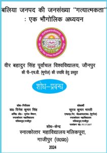 यह शोध-कार्य बलिया जनपद की जनसंख्या संरचना, प्रवासन एवं सामाजिक-आर्थिक गतिशीलता के भौगोलिक विश्लेषण पर आधारित है, जो शोधार्थियों एवं विषय विशेषज्ञों के लिए उपयोगी सिद्ध होगा। शोधार्थी की मौखिक परीक्षा उदयप्रताप महाविद्यालय वाराणसी के प्रो. डा. राजीव रंजन सिंह की उपस्थिति में पूर्ण हुई। सूरज कुमार भारती को उपाधि देकर सम्मानित करने का कार्य सुविधानुसार समय मिलने पर कुलाधिपति आनंदीबेन उसके हाथों संपन्न होगा। विद्यालय के अध्यापक को मिले इस गौरव पर विद्यालय के प्रबंधक, प्रधानाचार्य सहित सभी अध्यापकों ने शुभकामनाएं दी हैं।