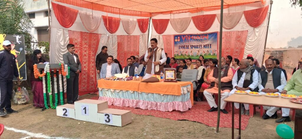 बलिया : विहान विद्यापीठ की सहायक संस्था विहान किंडरगार्टन में शनिवार को वार्षिक खेलकूद प्रतियोगिता का सफल आयोजन हर्षोल्लास एवं उत्साह के साथ किया गया। कार्यक्रम की शोभा मुख्य अतिथि उत्तर प्रदेश सरकार के पूर्व मंत्री नारद राय की गरिमामयी उपस्थिति से और बढ़ गई।